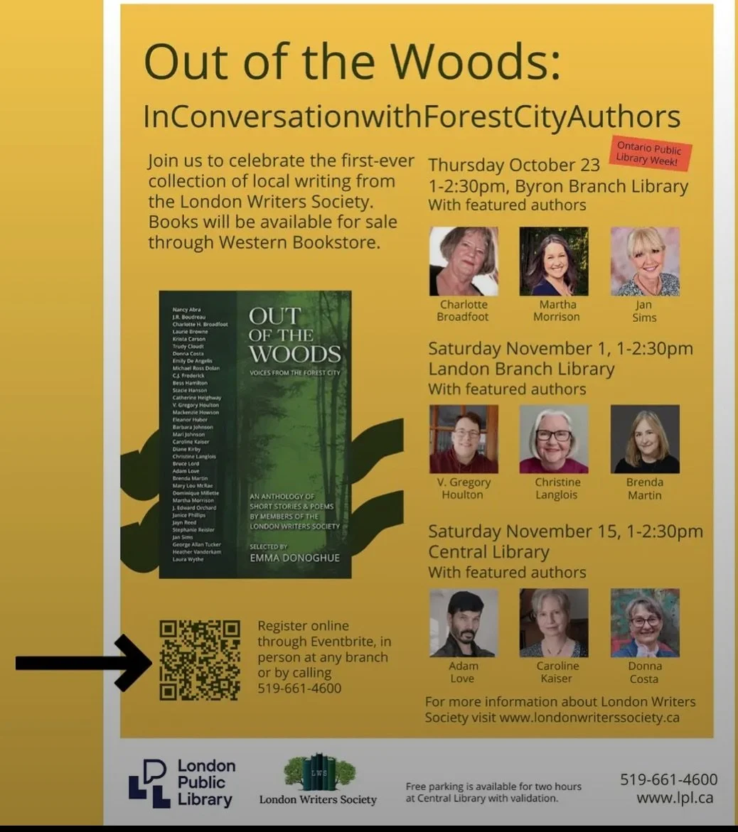 Nestled amidst the lush forests of London, Ontario and its surrounding communities, a vibrant tapestry of voices emerges from the trees. Out of the Woods brings together an extraordinary collection of stories and poems—each one a testament to the power of storytelling and the diverse perspectives of writers in the London Writers Society.